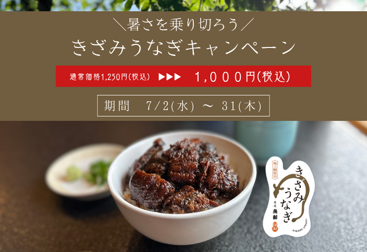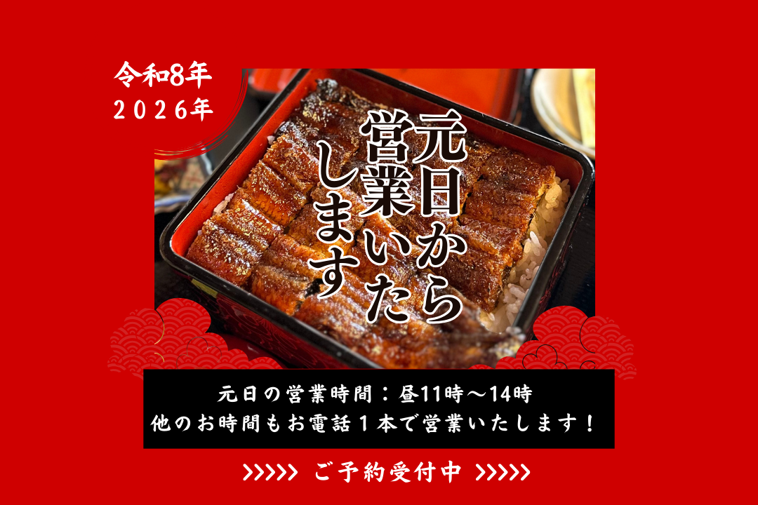 11:00~14:00(LO13:30)※水曜日はうなぎ料理とテイクアウトのみ提供、電話での完全予約制で夜営業可